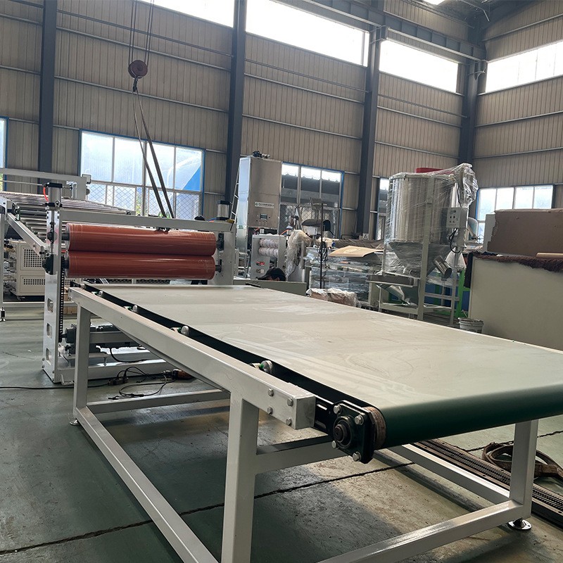 PVC ກະດານເຮັດໃຫ້ມີແສງ extruder ອຸປະກອນ: ອຸປະກອນສ່ວນໃຫຍ່ແມ່ນປະກອບດ້ວຍ extruder twin-screw, mold ແຜ່ນ, ປະຕິທິນສາມມ້ວນ, ວົງເລັບເຮັດຄວາມເຢັນ,