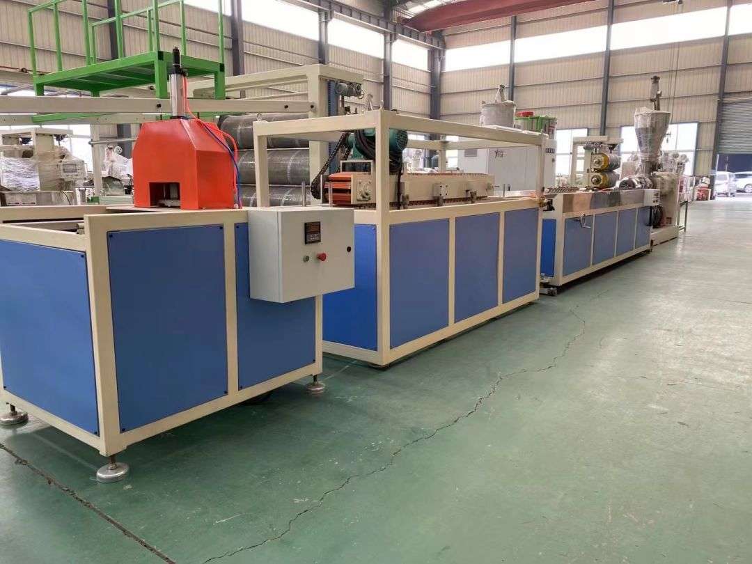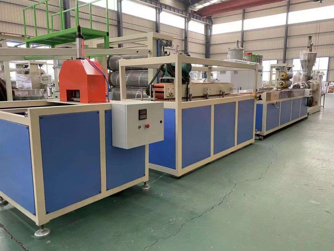 ສາຍການຜະລິດໂປຼໄຟລ ສາຍການຜະລິດໂປຼໄຟລ໌ໃຊ້ SJsz-65/132 ຊຸດຂະຫນາດຄູ່ຮ່ວມ Screws Screwation ຮູບຈວຍຮູບຈວຍ, ລົດໄຖນາສະແຕນເລດ, ຕັດເຄື່ອງແບບປະສົມປະສານໂດຍອັດຕະໂນມັດ, ແລະຖີ້ມ racks ປະສົມປະສານ. ເວທີການຖ່າຍຮູບແມ່ນມີເຄື່ອງດູດຝຸ່ນຄວາມດັນສູງແລະຈັກສູບນ້ໍາ, ເຊິ່ງມີ 4 ມິຕິທີ່ສາມາດປັບໄດ້. ລົດໄຖນາແມ່ນຖືກມັດ. ເຄື່ອງຕັດຄວາມຍາວແບບອັດຕະໂນມັດໂດຍອັດຕະໂນມັດໃຊ້ປຸ່ມການເດີນທາງເພື່ອຕັດເປັນຄວາມຍາວຄົງທີ່. rack stacking ແມ່ນຍາວ 6 ແມັດ, ເຮັດດ້ວຍເຫລັກສະແຕນເລດ, ແລະ flipped pneumatically.
